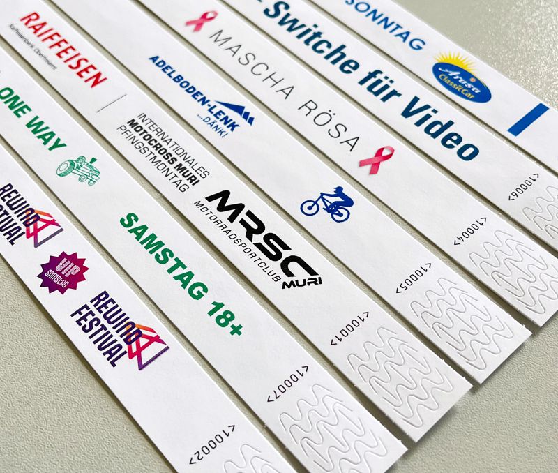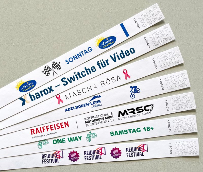 - Druck auf weisse Eintrittsbänder